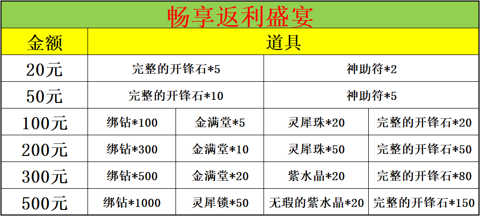 1、活动期间内,每日充值500元可领取之前所有档位奖励。(注:充值超5000元可联系客服小精灵QQ:97980930)