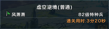 一、本次活动,在【宇宙奥秘】服中,首先用时通关虚空逆境“普通”模式必须超越“风萧萧”玩家的3分20秒,并且在2025年11月30日21:59:59这个活动截止时间时,最后在排行榜上显示通关用时最短的个人玩家,将获得以下奖励: